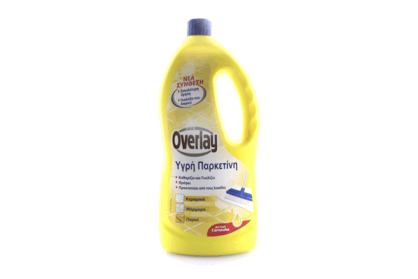 Το Overlay Υγρή Παρκετίνη είναι ένα ειδικό καθαριστικό που καθαρίζει και γυαλίζει όλα τα δάπεδα από κεραμικό, μάρμαρο, τερακότα, παρκέ *, γρανίτη και ημιπορσελάνη χωρίς τη χρήση μηχανής γυαλίσματος. Η νέα σύνθεση του Overlay Υγρή Παρκετίνη, πλούσια σε κερί Carnauba, αφήνει ένα ειδικό προστατευτικό φιλμ στις επιφάνειες, που τις προστατεύει από λεκέδες, γραντζουνιές και υγρασία χωρίς να αφήνει σημάδια, εξασφαλίζοντας λάμψη που διαρκεί. Το Overlay Υγρή Παρκετίνη καθαρίζει, γυαλίζει, θρέφει και προστατεύει τις επιφάνειες, με μία μόνο εφαρμογή.